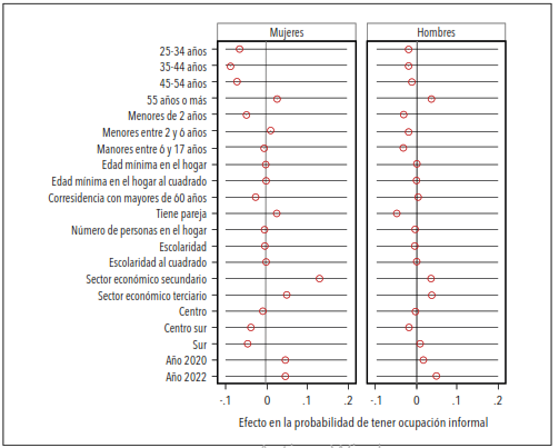 Figura 5. Factores asociados a la probabilidad de informalidad según sexo